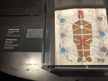 The exhibition explores this with a chronology of AI from birth through life via the physical objects that led to its eventual invisible form. It begins with humanity’s fantasy of animating the inanimate with obscure comics about clay men brought to life magically called “golems” as well as the more familiar creations of artificial life like in Mary Shelley’s Frankenstein.